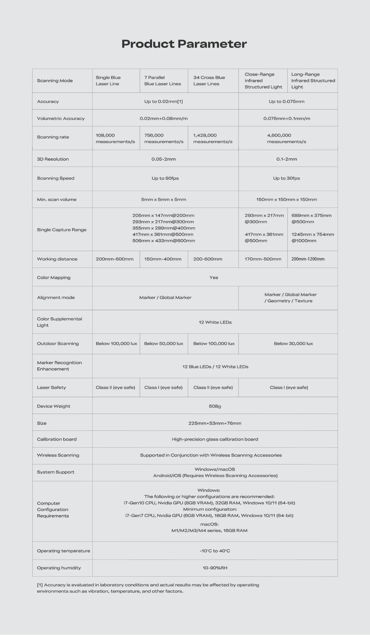 - Metrology-Grade Accuracy: Achieve precision up to 0.02 mm with a volumetric accuracy of $0.02 mm + 0.08 mm/m$.